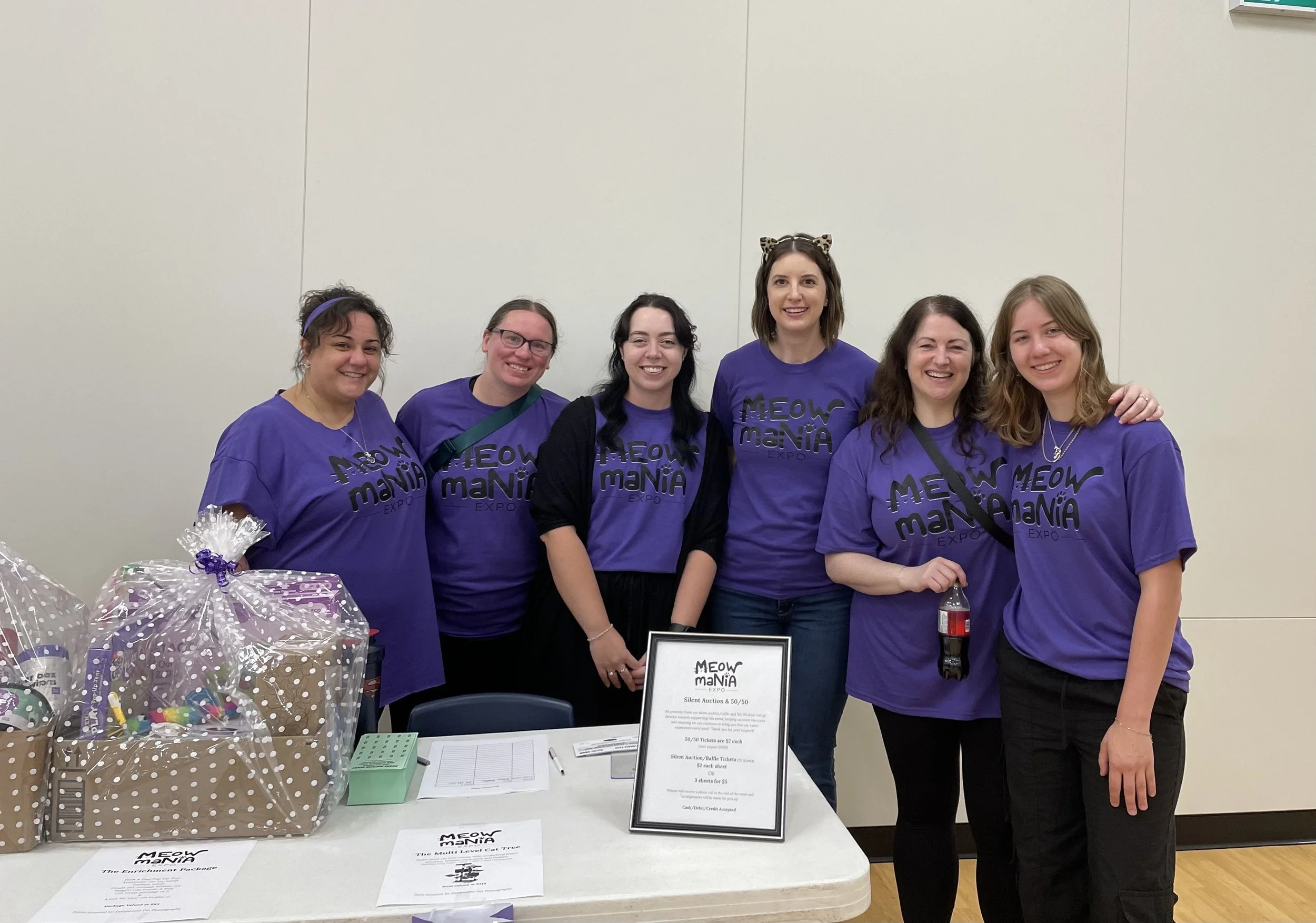 Meow Mania Volunteers 2024. Teri, Kate, Kirstie, Sabrina, Kelsey and Jaylen